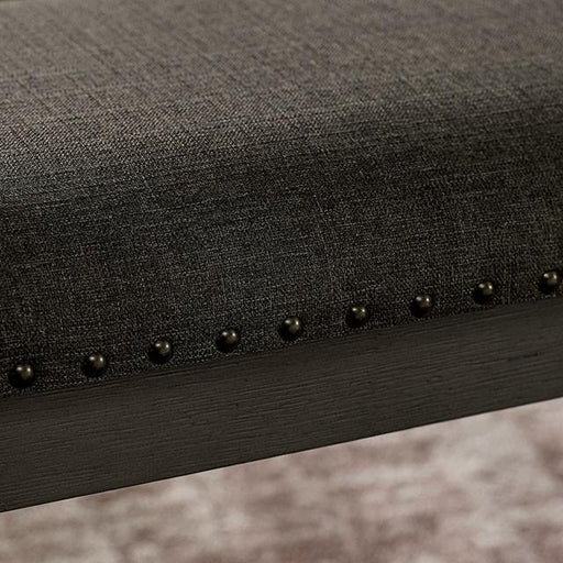 FOA WestA gray wood grain finish adorns this fashionable and practical bench. Featuring fabric upholstered padded seat, the inclusion of a bench delivers s...