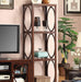 Melville Cherry Pier Cabinet, 24"W X 16"D X 74 1/4"H, 88lbs. Finished in cherry, this pier cabinet stands at either side of the TV console and offers three levels of shelving display. Features: Framed Glass Doors Cherry Finish Oval Shape Accents