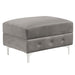 Decorator-inspired flannelette fabric and deep tufted frames combine for a seating experience that is forever inviting. The classic tuxedo design flourishes among more modern details such as the steel legs and button tufting. This ottoman fits perfectly in between the Chairses for a spectacular look.