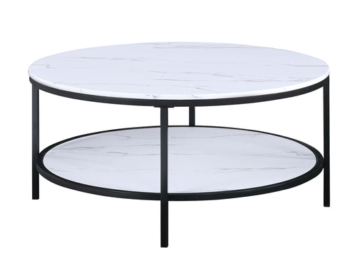 Coaster Z2 PremiumThis round coffee table offers a modern two-tone design, perfect for any contemporary living space. Its white faux marble top delivers a sleek, sop...